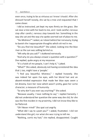 dressed herself loosely, she sat by a tree and requested that I